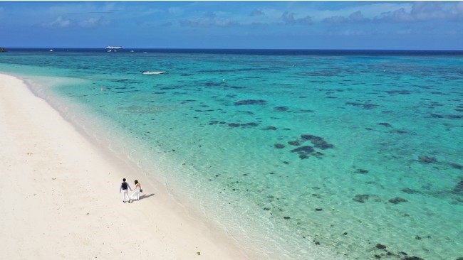 プランでは、ツアーの予約と同時にフォトウェディングも即予約を確保。撮影ロケーション、カット数に応じた三つのプラン((1)ライトプラン・ビーチフォトウェディング(2)ベーシックプラン・ビーチ+1ロケーション(3)1DAYフォトシューティングプラン)から一つを選択できる。衣装や小物は当日選べる。現地追加オプションで、ドローンでの撮影や星空の下での撮影も可能だ。