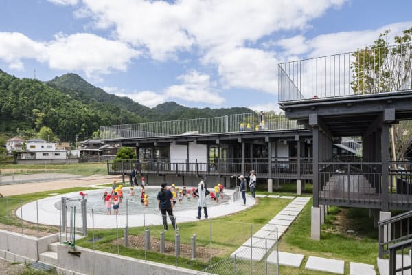0歳~5歳児の子どもが通う認定こども園。「建物を囲うように回廊があり、屋内と屋外をつなぐ豊かな子どもの居場所が設けられている」(中島さん)。深い軒下は「伝統家屋で用いられてきた環境装置を現代的に活用している」(腰原さん)。洗練されたデザインだが「大きな遊具のような複雑な空間配置を現代の構造技術で実現した」(鈴木さん)。周囲の田園風景にもなじむ。