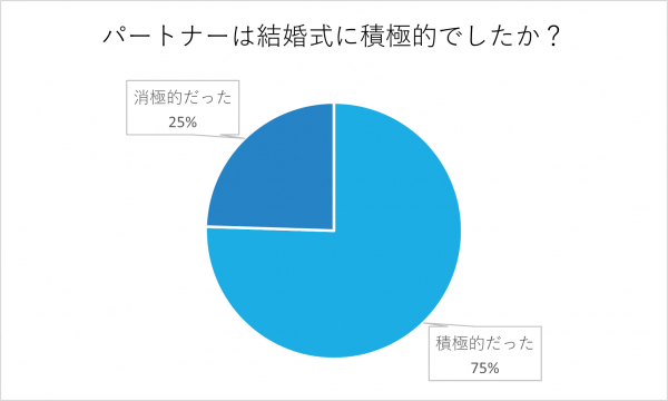 APOLLO11が実施した「結婚式準備に関するアンケート調査」では、約75%のパートナーが結婚式準備に積極的だったことがわかりました。