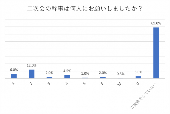 司会進行をプロにお願いしていたので、幹事はいなかった。(女性/0人)