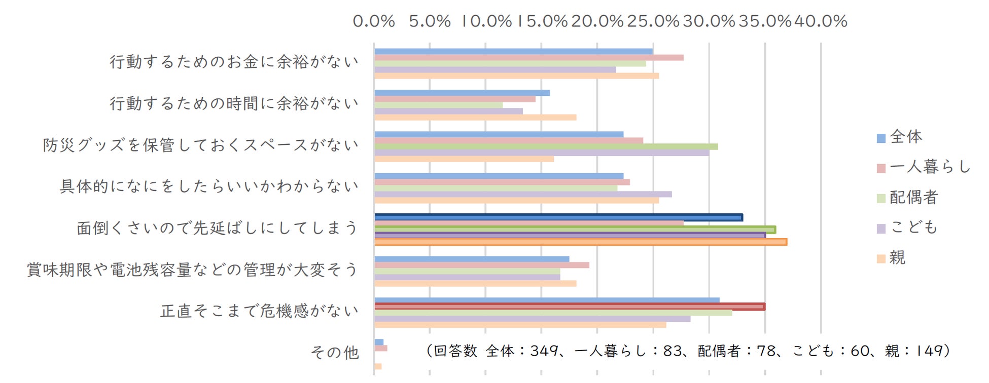 ●「面倒くさい」や「危機感がない」が上位に。身近な生活の中で、防災意識を高めることが重要。