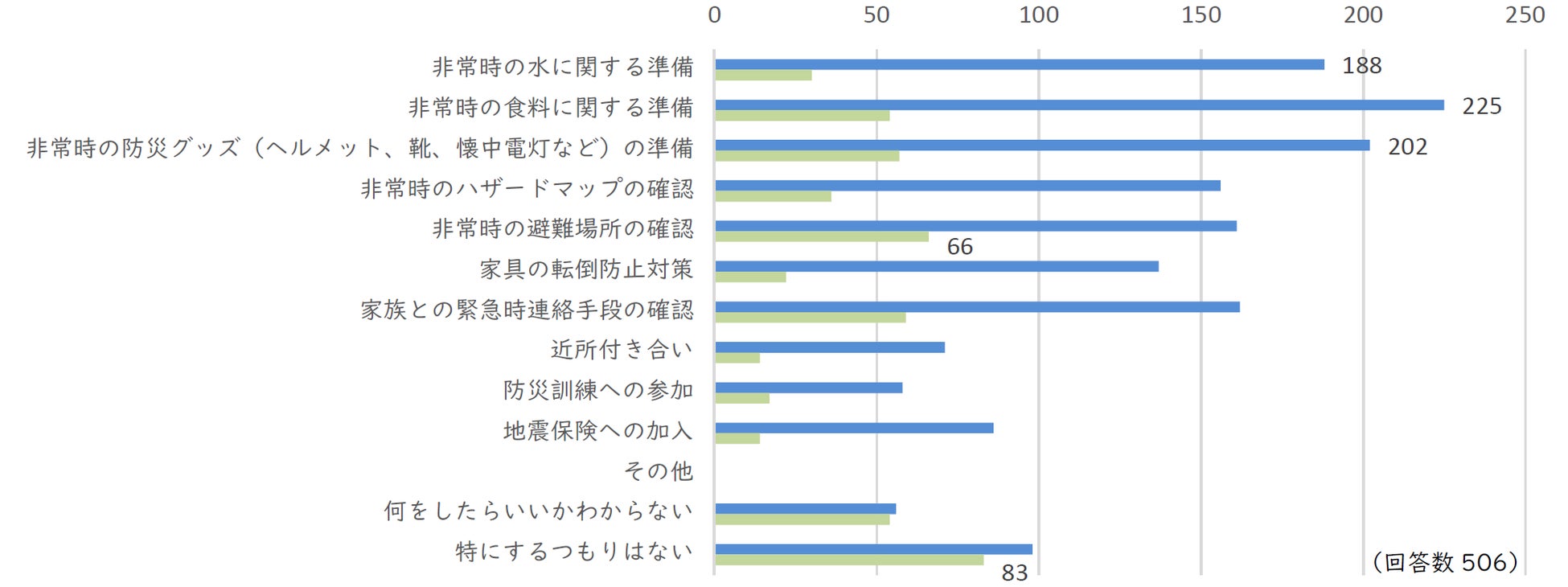 ●防災に対する行動は、非常時のモノの準備が大切。でも一番大切なのは…。