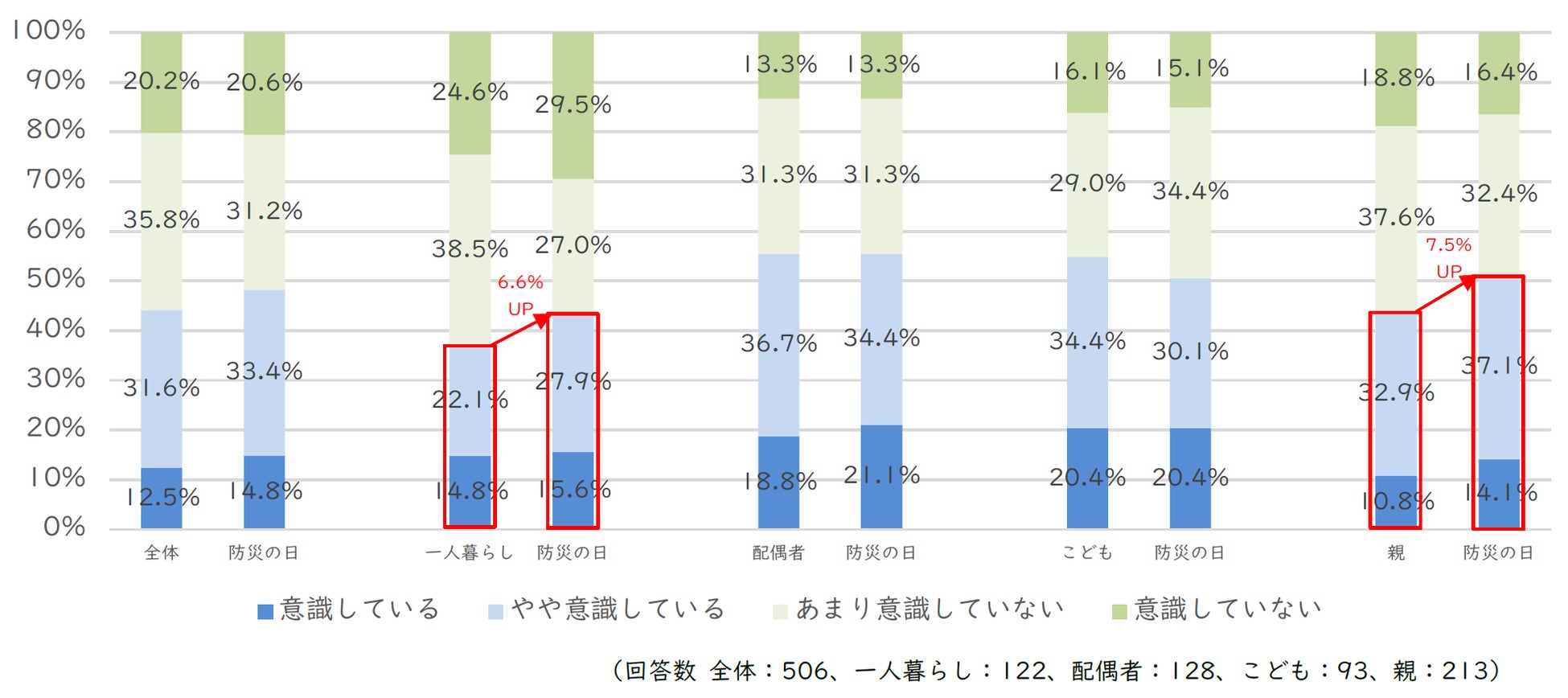 ●防災の日などをきっかけに、一人暮らしの方の防災意識は6.6%UP。