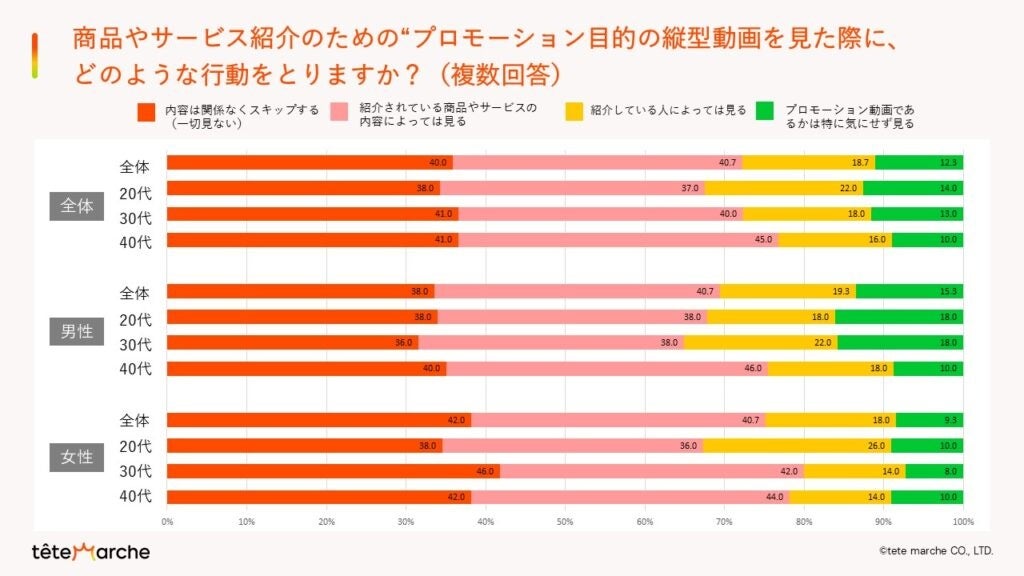また、プロモーション目的の動画と分かっていても、「動画をスキップせずに見る」と答えた人は約70%にのぼり、縦型動画はユーザーの興味が高いことが分かりました。
